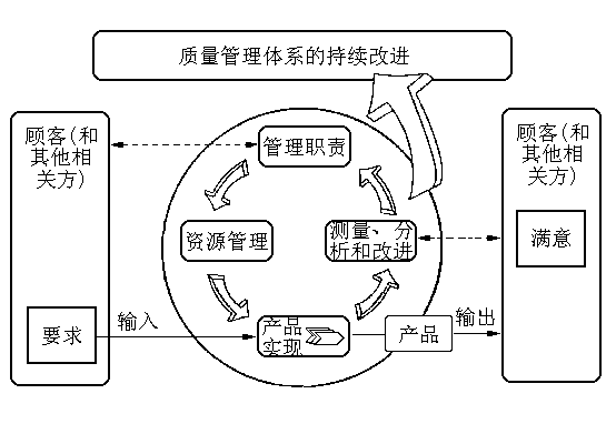 实施过程(如下图:)为蓝本,在与ISO9000贯标有关的功能方面包括了质量文件管理,工作及质量记录管理,图